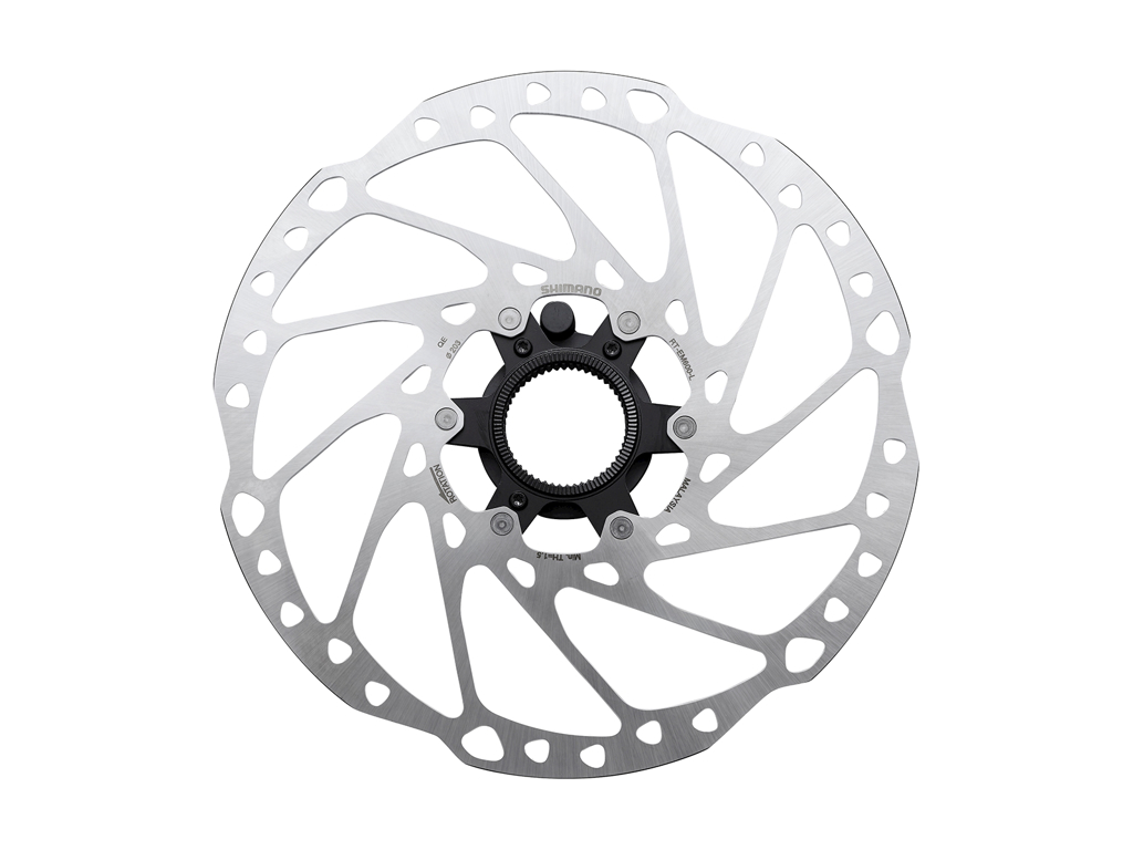 Shimano Steps skivebremse rotor med center lock bespænding og fart sensor. Fart sensoren sender signal til Shimano Steps cykel computer.